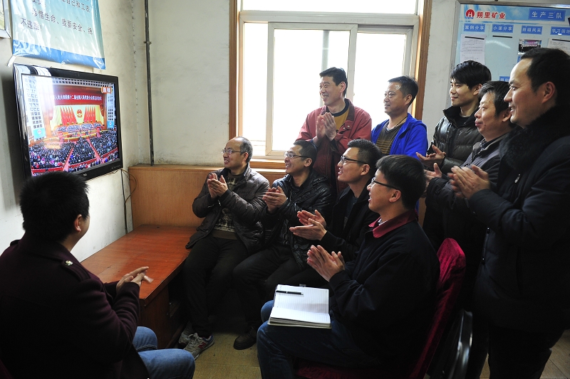 3月5日上午9时,十二届全国人大五次会议隆重开幕,朔石矿业基层单位干群自发围坐在电视机前,收看大会盛况。