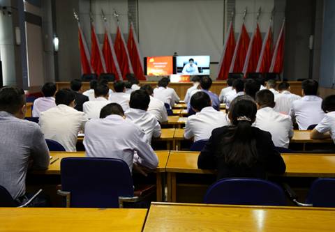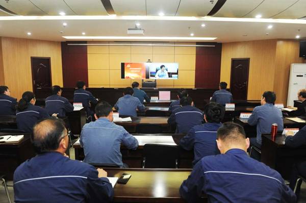 4月26日下午,神源煤化工组织收看淮北矿业党组织标准化建设培训班视频会,该公司领导、党群部门全体人员、各党支部书记参加了会议。