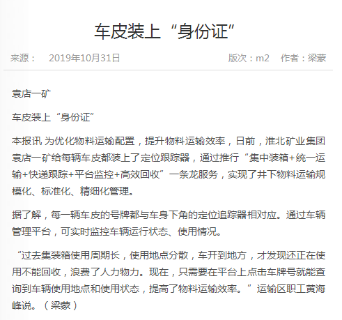 《中国煤炭报》:淮北矿业集团袁店一矿车皮装上“身份证”