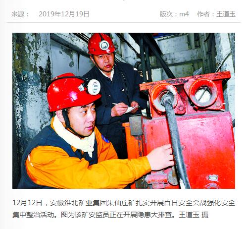 《中国煤炭报》:淮北矿业集团朱仙庄矿扎实开展百日安全会战强化安全集中整治活动