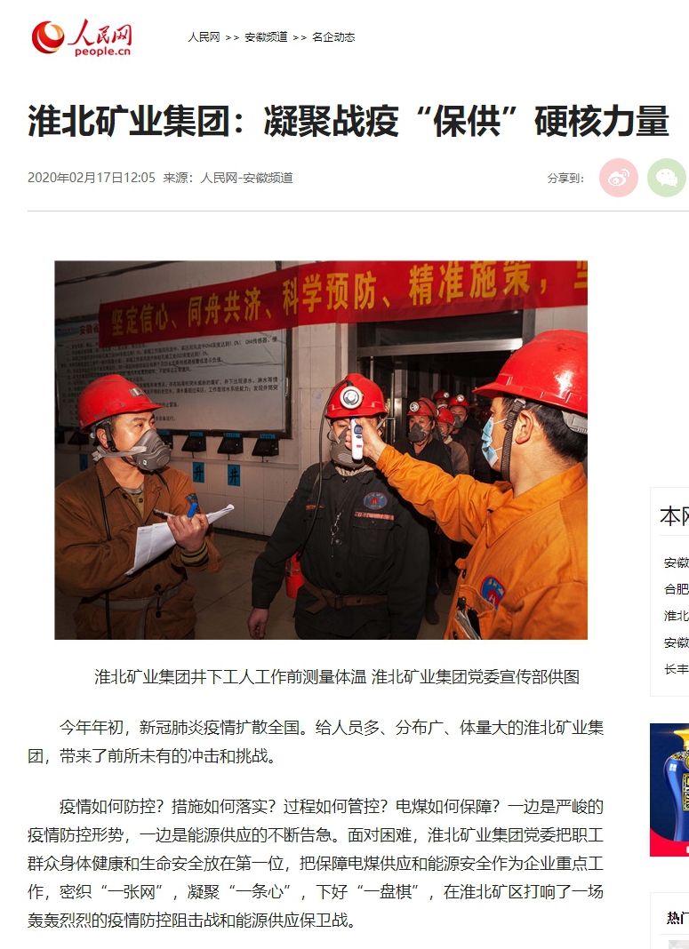 当前,疫情防控处于最吃紧的关键期。淮北矿业集团党委一手抓疫情防控,一手抓能源保供。在“确保疫情安全、确保生产安全”的前提下,本着复工人员最少化的原则,详细制定了复工复产方案,并报上级部门同意,分批次、有秩序复工复产,保障电煤生产和能源供应,为打赢疫情防控阻击战提供坚实物质基础。