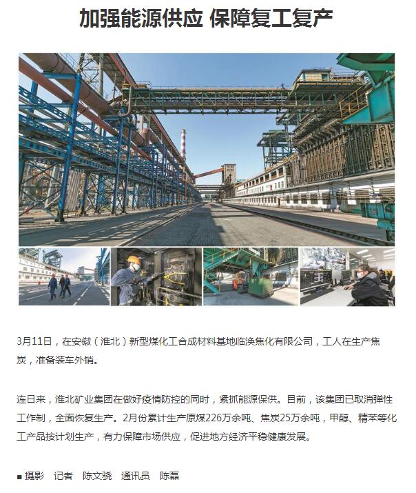 《淮北日报》:加强能源供应 保障复工复产