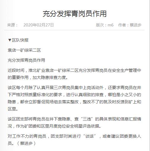 《中国煤炭报》:袁店一矿综采二区充分发挥青岗员作用