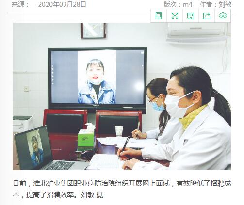 《中国煤炭报》:淮北矿业集团职业病防治院开展网上面试