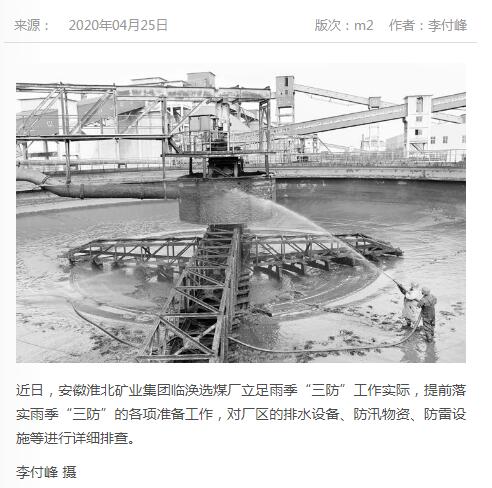 《中国煤炭报》:淮北矿业集团临涣选煤厂雨季“三防”早行动