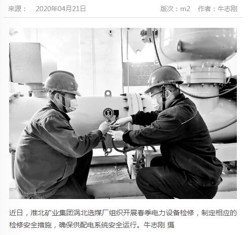 《中国煤炭报》:淮北矿业集团涡北选煤厂开展春季设备检修保安全