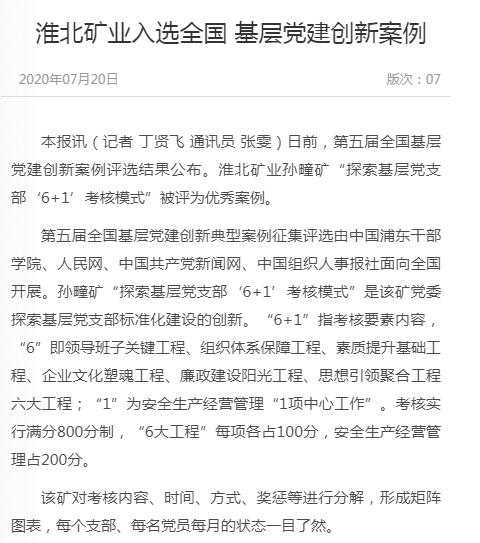 《安徽日报》:淮北矿业集团入选全国基层党建创新案例