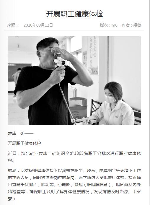 《中国煤炭报》:淮北矿业集团袁店一矿开展职工健康体检