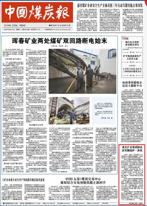 淮北矿业集团积极推进岩巷掘进作业线全工序机械化,与设备厂家联合开展合作攻关,升级改造原有260型综掘机,加装锚护一体化装置,研制出全国首台岩巷龙门式掘锚护一体机,达到了一次性投入少、设备利用率高的目的。