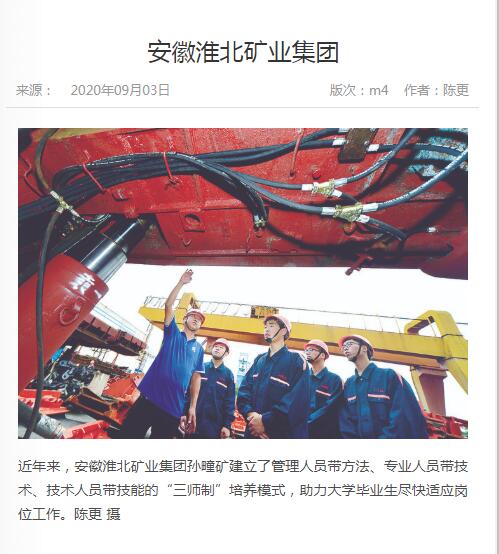 《中国煤炭报》:淮北矿业集团孙疃矿建立“三师制”培养模式