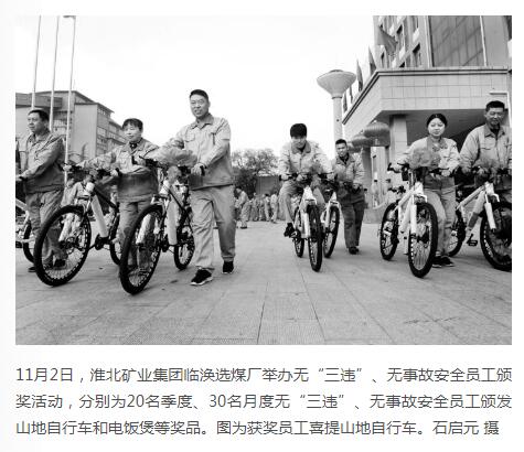 《中国煤炭报》:淮北矿业集团临涣选煤厂职工安全受奖励