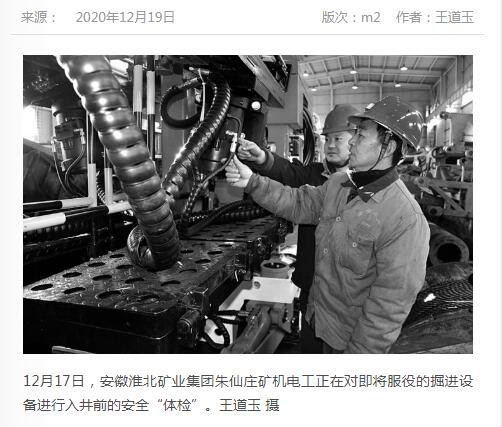 《中国煤炭报》:淮北矿业集团朱仙庄矿对设备进行入井前安全“体检”