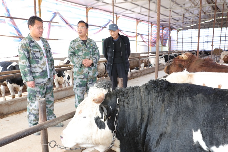 淮北矿业集团扶贫工作队人员深入养殖区,与养牛大户进行产业项目研究(乔时庆 摄)