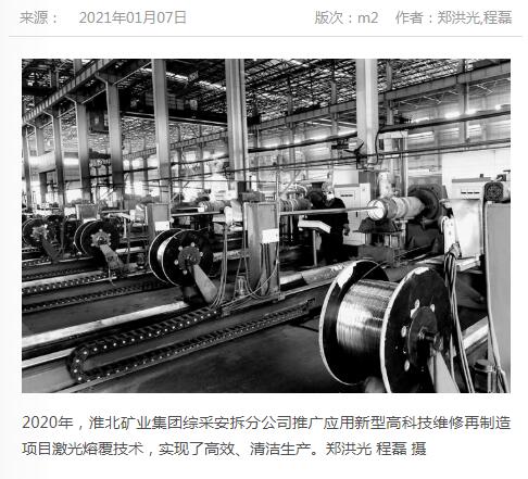 《中国煤炭报》:淮北矿业集团综采安拆分公司推广应用激光熔覆技术