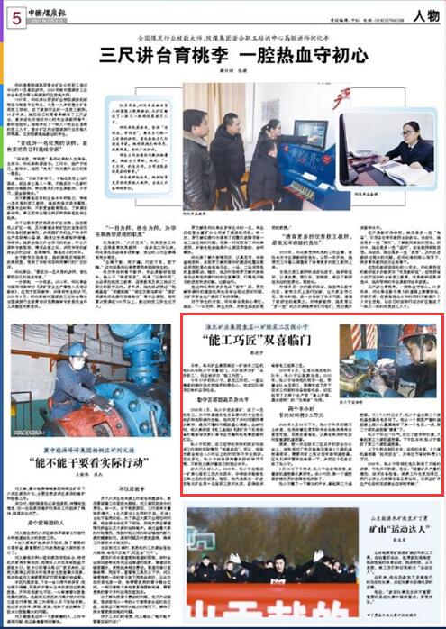 日前,淮北矿业集团袁店一矿综采二区机电队队长张小宁双喜临门,不仅被评为矿“五好职工”,而且被评为“能工巧匠”。