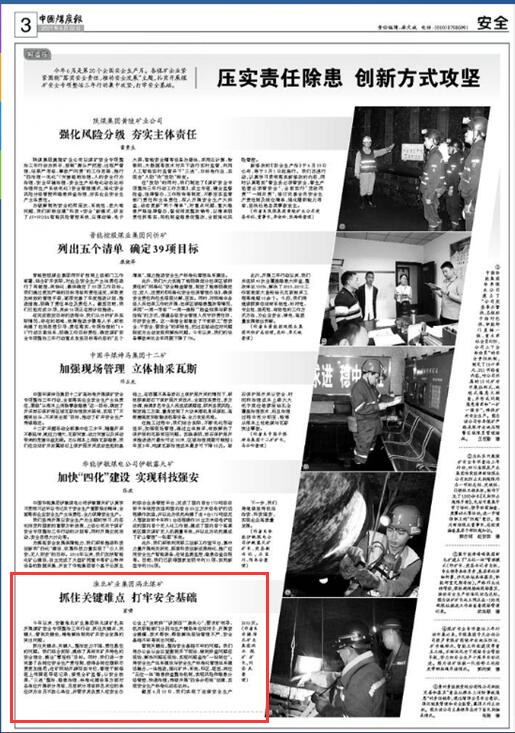 抓住关键点、关键人,整治定力不强、责任悬空的问题。我们结合实际,提炼了具有本矿井特色的安全理念,提出“零轻伤”目标。同时,我们进一步完善了各岗位安全生产责任制,使得各岗位履职尽责更加规范;在矿网站开辟写实专栏,管理干部每班上传跟班带班记录,接受全矿监督;从安全效果、“三违”整治、隐患治理、标准化建设等方面对各单位开展积分考核,月度积分考核排名末位的单位评为当月不放心单位,并要求其负责人在安全办公会上“坐前排”“讲原因”“表决心”;要求矿领导、机关职能部门分别与生产辅助单位结对子,开展安全提醒、技术帮扶,帮助解决现场管理不严、安全基础不牢等突出问题。