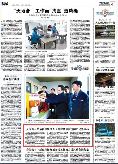 此次成功试运转的柴油机单轨吊无人驾驶技术的实施地点在杨柳矿井底乘人车场至西翼乘人车场,路线长1040米。该技术为进一步建设完善杨柳矿柴油机单轨吊全矿井网络化运输和智能物料配送打下了坚实基础,对淮北矿业集团综合自动化、智能化系统的研究提供了技术支撑。(王 盟 闵 凯)