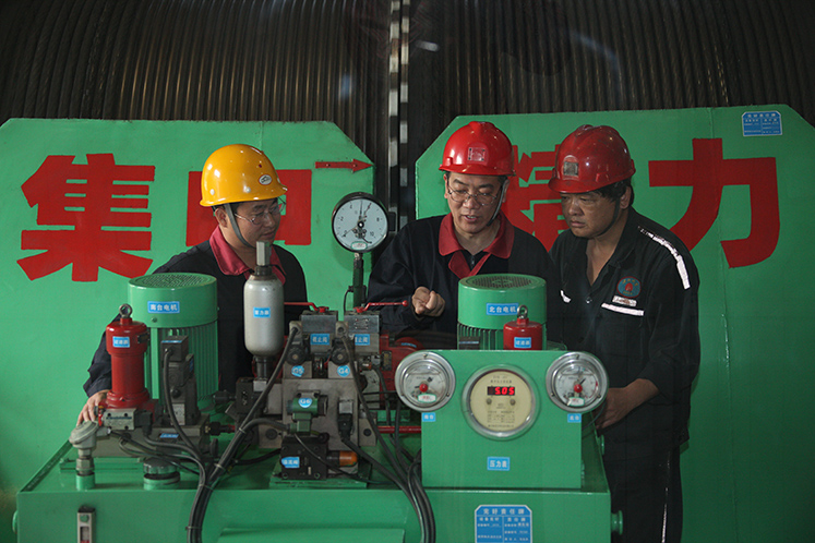 (杨杰和徒弟在生产一线。淮北矿业集团供图)