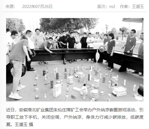 《中国煤炭报》:淮北矿业集团朱仙庄矿让职工低碳度夏