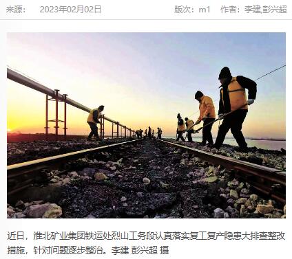 《中国煤炭报》:淮北矿业集团铁运处烈山工务段认真落实复工复产隐患大排查整改措施