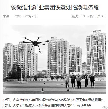 《中国煤炭报》:淮北矿业集团铁运处临涣电务段选派3名职工参加无人机操作培训