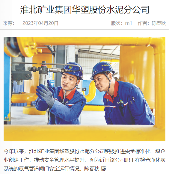 《中国煤炭报》:淮北矿业集团华塑股份水泥分公司积极推进安全标准化一级企业创建工作