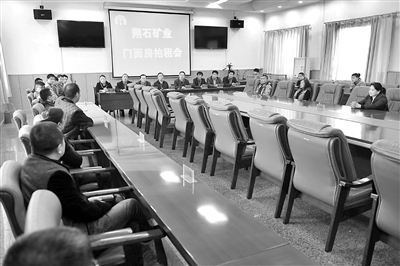▶安徽淮北矿业集团朔石矿业公司将街道门面房向社会公开招租,使临街房产比以往增值一倍多。图为公开招租现场。乔时庆 摄