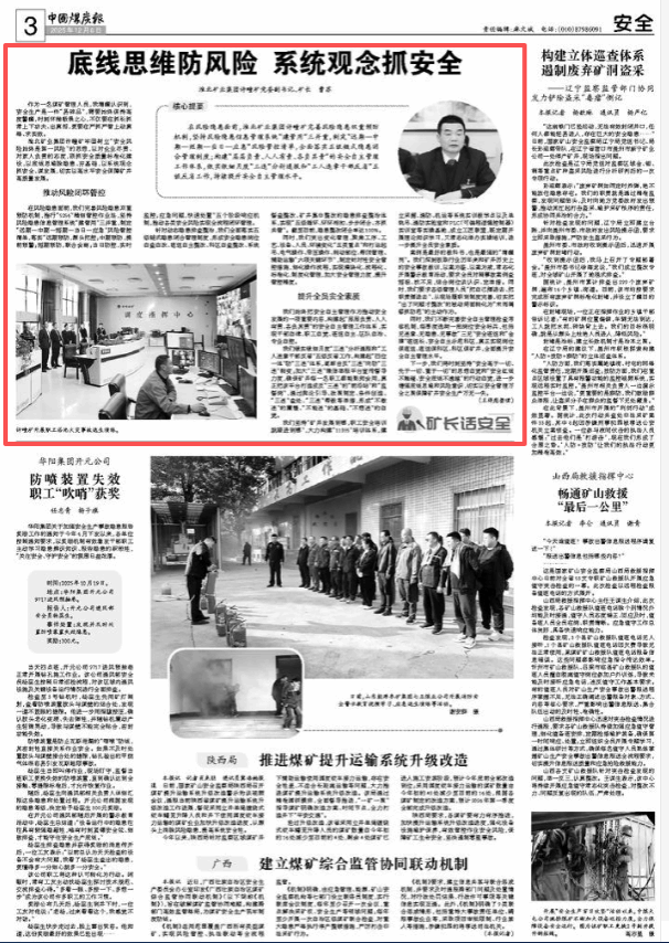 作为一名煤矿管理人员,我清醒认识到,安全生产是一件“易碎品”,需要始终保持高度警醒,时刻怀揣敬畏之心,不仅要在抓长抓常上下功夫、出真招,更要在严抓严管上动真格、求实效。