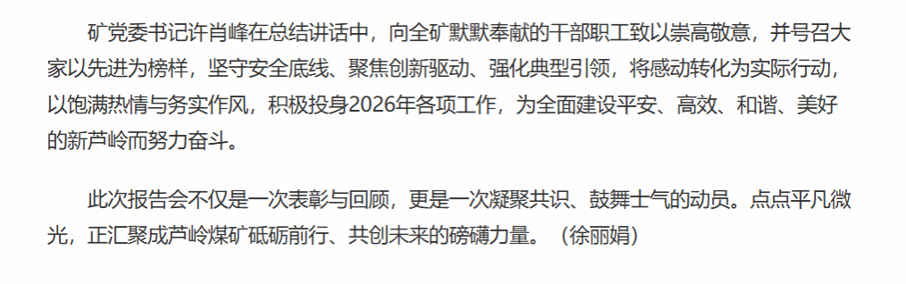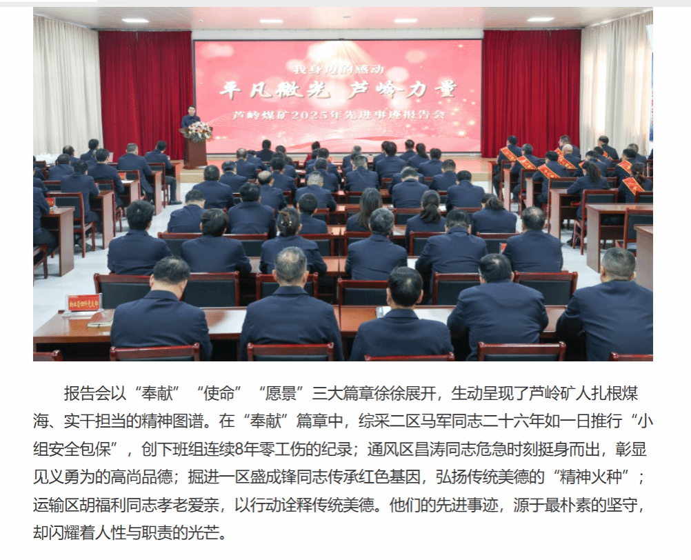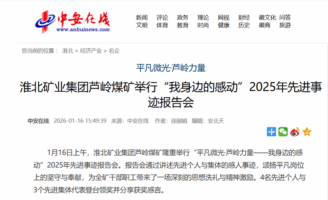 《中安在线》:淮北矿业集团芦岭煤矿举行“我身边的感动”2025年先进事迹报告会