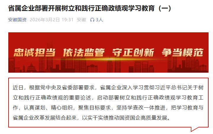 淮北矿业集团党委召开党委常委会(扩大)会议,安排部署树立和践行正确政绩观学习教育工作。强调要把“立党为公、为民造福、科学决策、真抓实干”总要求贯穿到开展学习教育、推动企业发展的全过程、各方面,始终坚持问题导向,通过多种途径全面查摆突出问题,以系统思维综合施策、举一反三,坚决纠治政绩观偏差,引导各级党组织和党员、干部实事求是、求真务实,为职工出政绩、以实干出政绩。