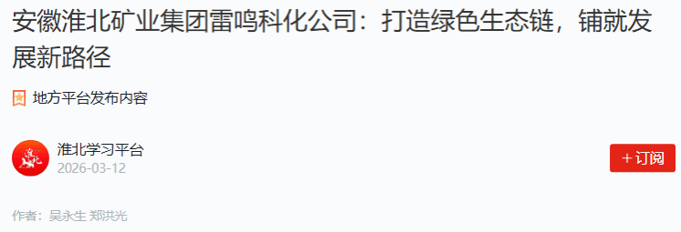 《学习强国》:淮北矿业集团雷鸣科化公司打造绿色生态链铺就发展新路径