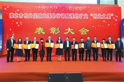 本报讯 记者鄢丽娜报道 10月20日,安徽淮北矿业集团召开表彰大会,对10位创业之星进行表彰(见右图)。这10位创业之星是淮北矿业集团下属各企业的职工,他们不仅自己成功创业,还带动了集团其他职工就业。