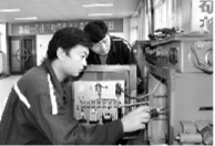 安徽淮北矿业集团袁店一矿帮助职工制定个人职业规划,建立了“名师带徒、技师讲堂、实训基地、劳模工作室”四位一体的培训模式。图为11月2日,一名机电技师在向徒弟传授井下馈电开关故障排查方法。张盼盼 摄