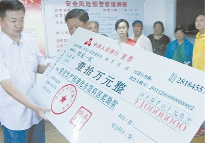 今年以来,安徽淮北矿业集团杨庄矿加大了对安全生产标准化区队的奖励力度。截至8月12日,该矿已实现连续安全生产1420天。图为杨庄矿将7月安全生产标准化示范科区10万元奖金和贺信送到综采一区。