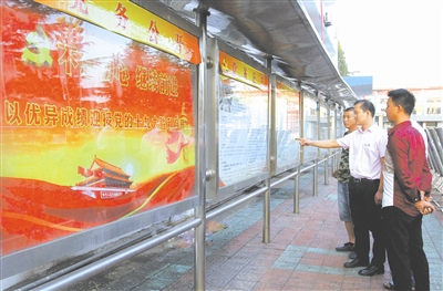 为扎实开展“坚定不移实现安全‘四零’目标,喜迎党的十九大”活动,安徽淮北矿业集团童亭矿党委通过网站、电视、广播、橱窗、标语等掀起宣传高潮,动员广大干部职工深化认识,统一思想,坚定信心,为党的十九大胜利召开营造良好安全生产氛围。图为干部职工驻足观看牌板展。高加林 摄
