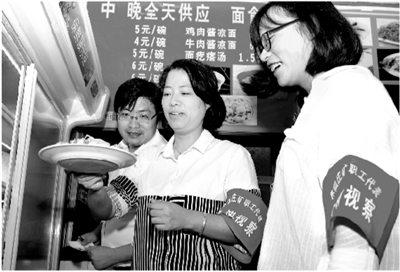 日前,安徽淮北矿业集团朱仙庄矿几名职工代表正在对职工餐厅食品卫生情况进行检查。该矿采取监管单位日常督查、职工代表动态检查和职工满意度测评相结合的方式严把食品安全、质量、价格关。朱安摄