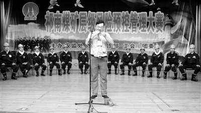 安徽淮北矿业集团祁南矿不断加大安全管理的改革创新力度,通过手指口述、风险预控、现场安全确认等,使“安全”成为职工的自觉、自愿、自发行为,从而实现从“要我安全”向“我要安全”的根本转变。图为该矿利用每周的层级风险预控管理大赛间隙,向职工演示如何正确使用自救器。王文东 摄