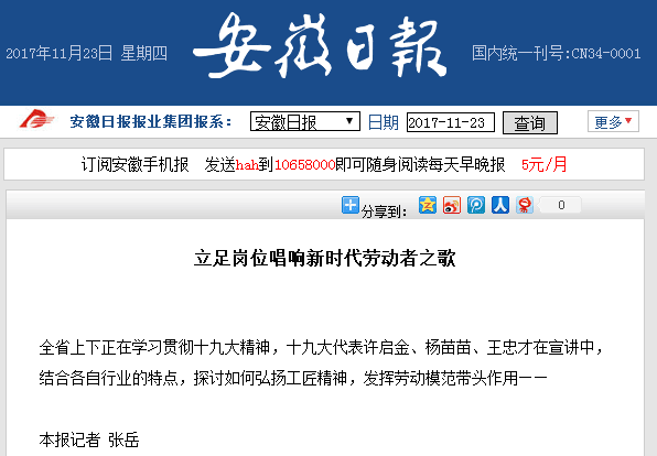 《安徽日报》11版头条:王忠才:立足岗位唱响新时代劳动者之歌
