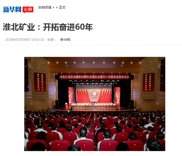 今年是淮北矿业矿区开发建设60周年。60年来,淮北矿业规模由小到大、实力由弱到强,已从单一的煤炭采选企业,发展成为以煤电、化工、现代服务为主导产业的跨区域、跨行业、跨所有制的大型能源化工集团,先后荣获过多项荣誉和称号,为国家能源安全和经济建设做出了重要贡献。5月3日,淮北矿业召开矿区开发建设60周年暨2017年度综合表彰大会,表彰2017年度涌现出的先进集体和先进个人。