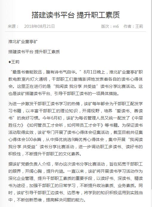 《中国煤炭报》:搭建读书平台 提升职工素质