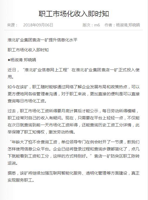 《中国煤炭报》:淮北矿业集团袁店一矿提升信息化水平