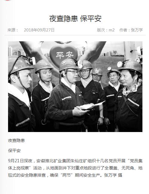 《中国煤炭报》:朱仙庄矿夜查隐患保平安