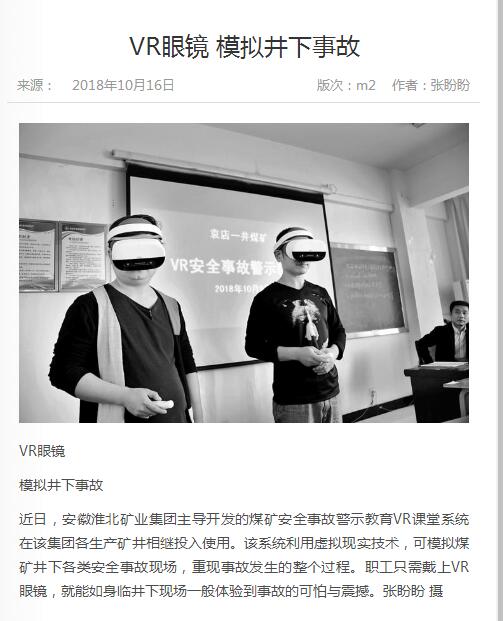 《中国煤炭报》:VR眼镜 模拟井下事故