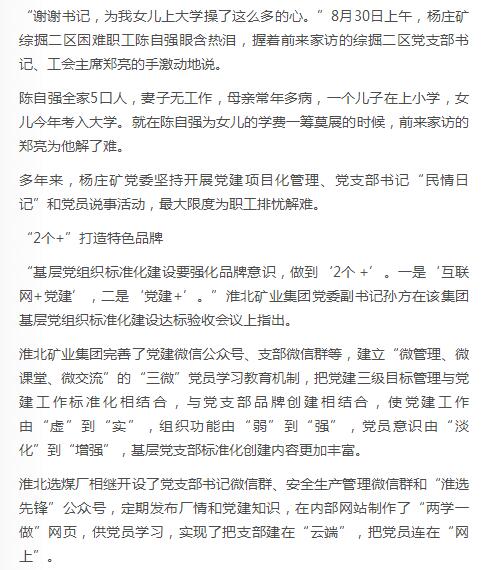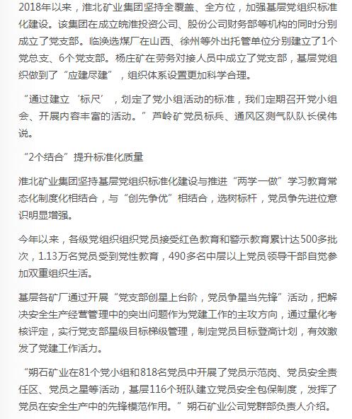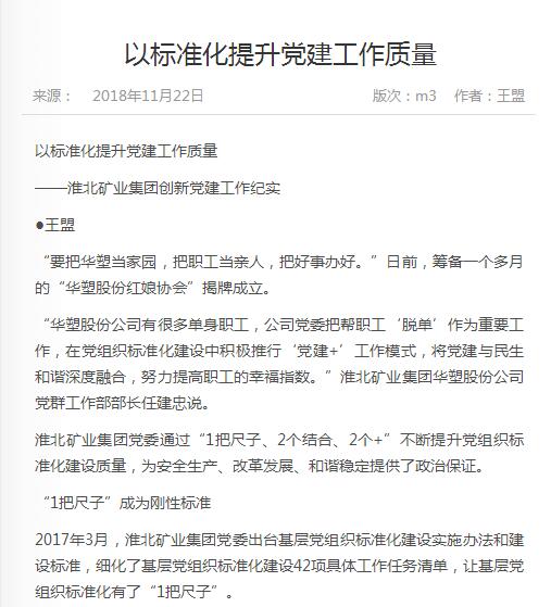 《中国煤炭报》:淮北矿业集团以标准化提升党建工作质量