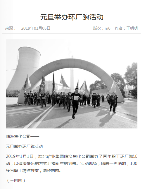 《中国煤炭报》:临涣焦化元旦举办环厂跑