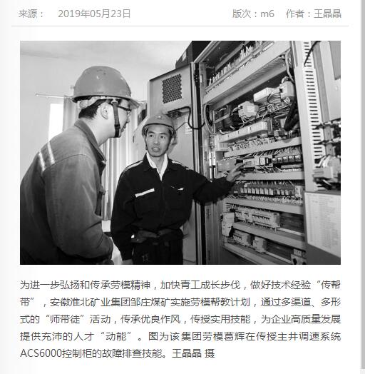 《中国煤炭报》:淮北矿业集团邹庄煤矿实施劳模帮教计划