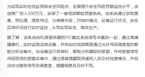 《中国煤炭报》:临涣选煤厂视频智能预警上线了