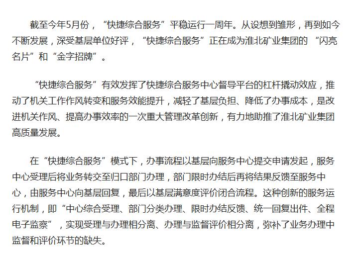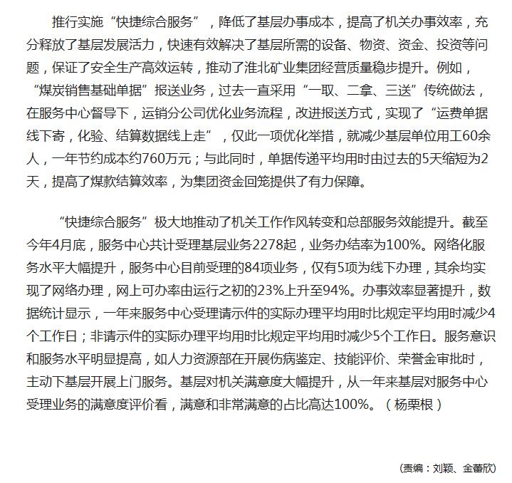 《人民网》:淮北矿业集团“快捷综合服务”成为“金字招牌”