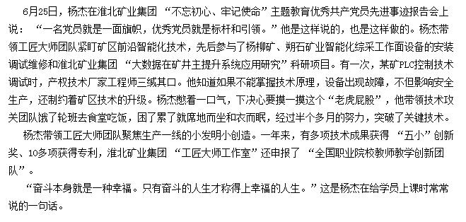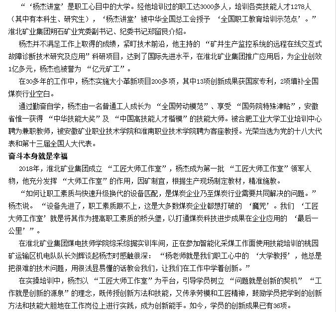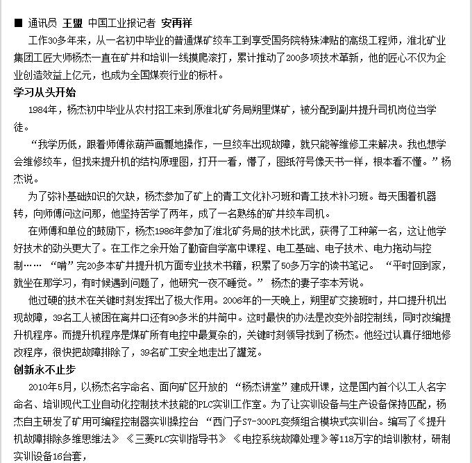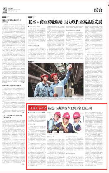 《中国工业报》:爱国情 奋斗者 杨杰:从煤矿绞车工到国家工匠大师