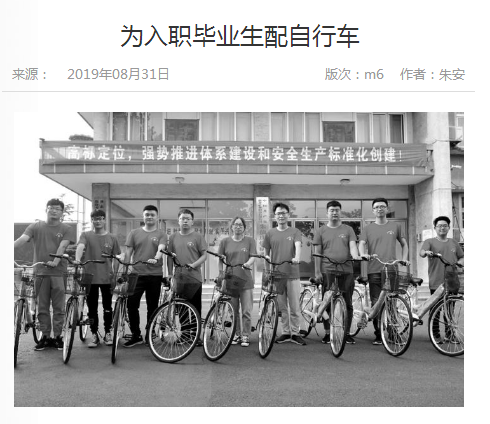 《中国煤炭报》:淮北矿业集团朱仙庄矿为入职毕业生配自行车